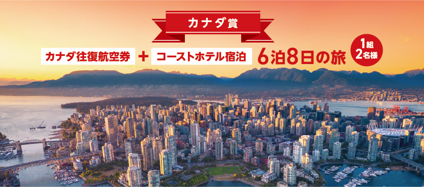 [カナダ賞/1組2名様]カナダ往復航空券+コーストホテル宿泊ペア6泊8日の旅