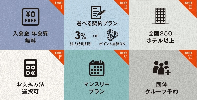 「アパ直Biz」は、入会金・年会費が無料で利用できる法人向けサービスです。全国250カ所以上のアパホテルで利用でき、現地払いまたはクレジットカード決済を選択可能。契約プランも柔軟に選べるほか、長期滞在に便利なマンスリープランや団体予約の割引など、お得で実用的な特典がそろっています。