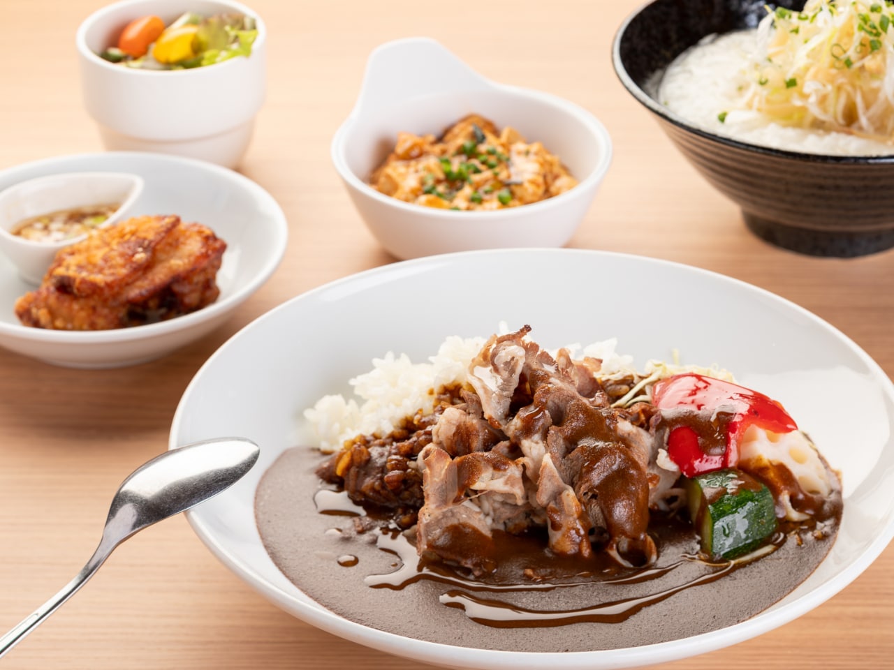 北海道ならではのラムしゃぶをトッピングしたアパ社長カレーと布袋のザンギのがっつりSet