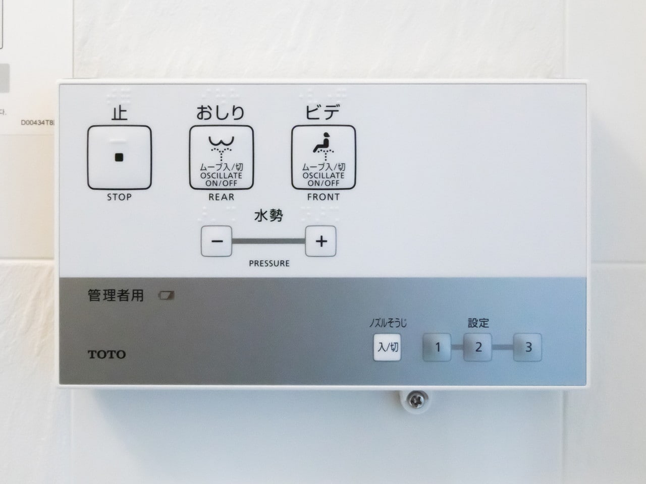 手の届きやすい位置に温水洗浄便座専用のリモコンを配置。