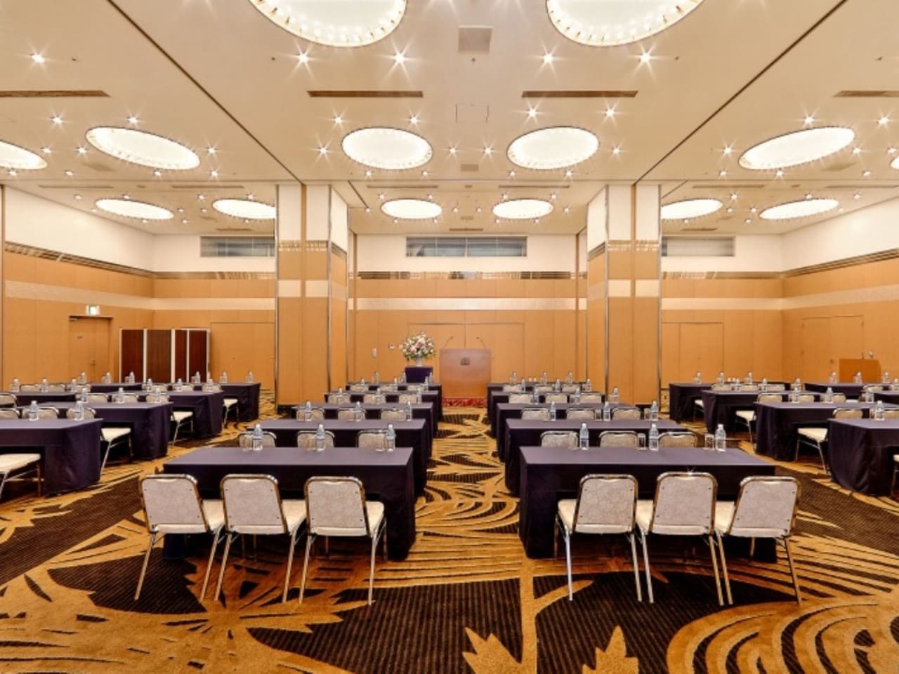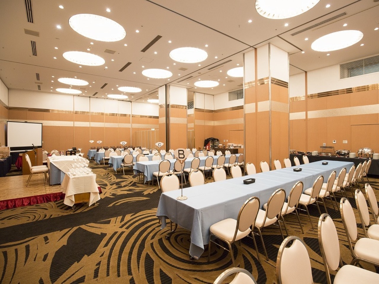 開放的な高い天井とシックな絨毯がコンベンションからパーティーまでを華やかに彩ります。