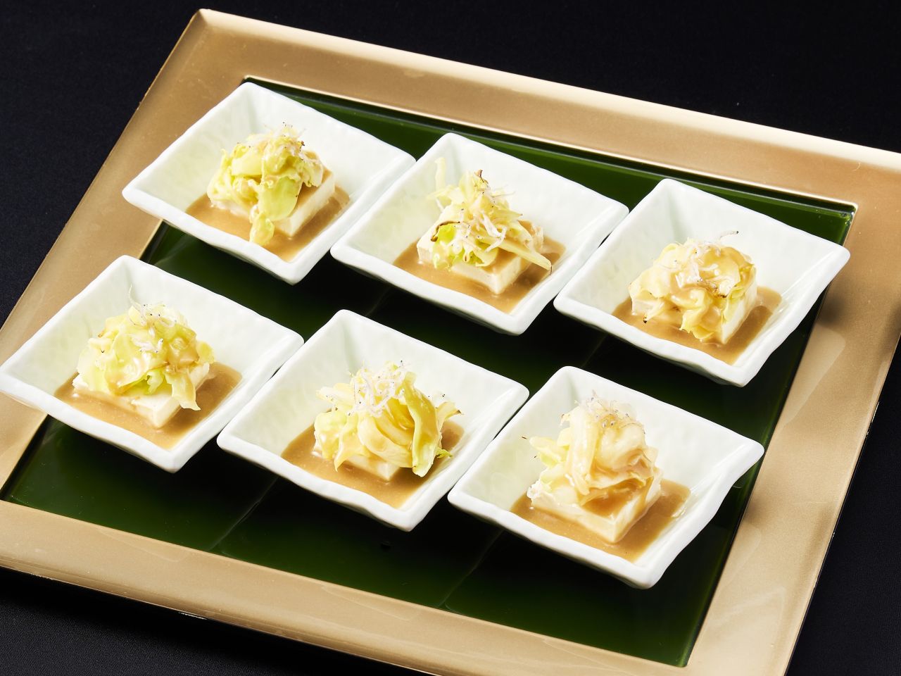 甘辛い金沢味噌を春キャベツと豆腐に絡めて提供します。
