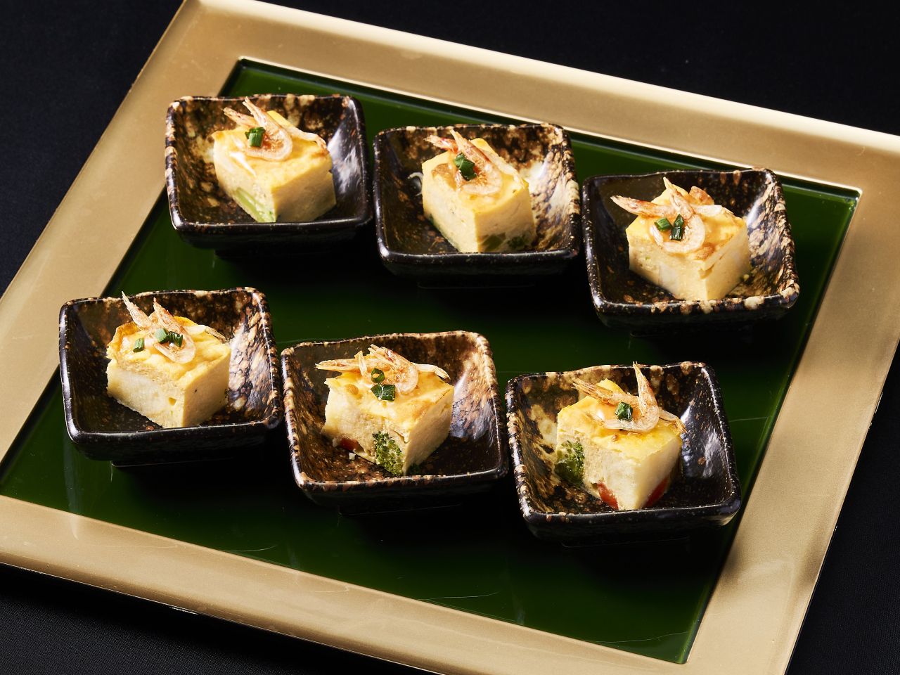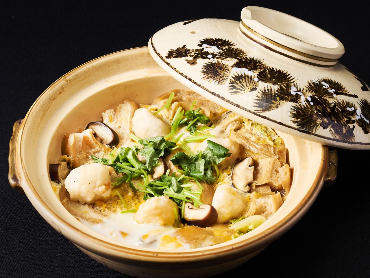 もっちり滑らかな食感の加賀車麩を蟹の団子と共に卵でとじます。