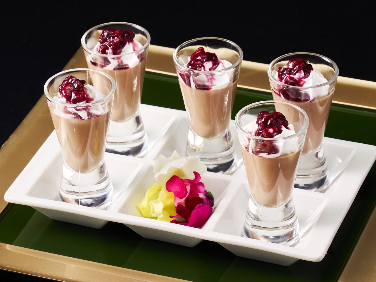 能登の牛乳をベースにチョコプリンを作り、旬の果実をソースにします。