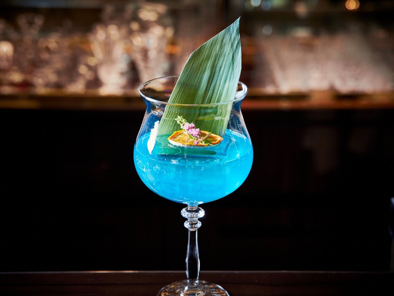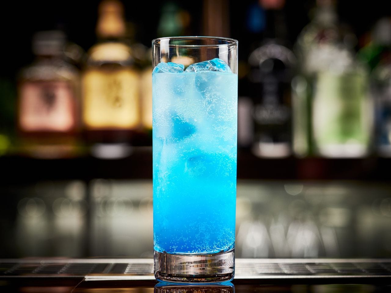 青く、甘くスッキリとした味わいのカクテル。1,100円(税込)