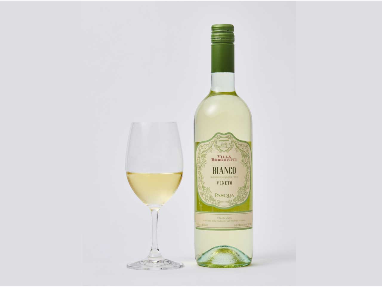 イタリアのピエモンテ州産。モスカート・ビアンコ種100%のグラス 880円(税込) ボトル 4,950円(税込)