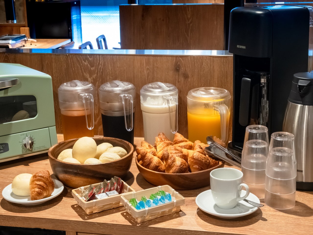 客室に備え付けの電気ケトルがあります。※バスルームのお水は飲料水でございます。