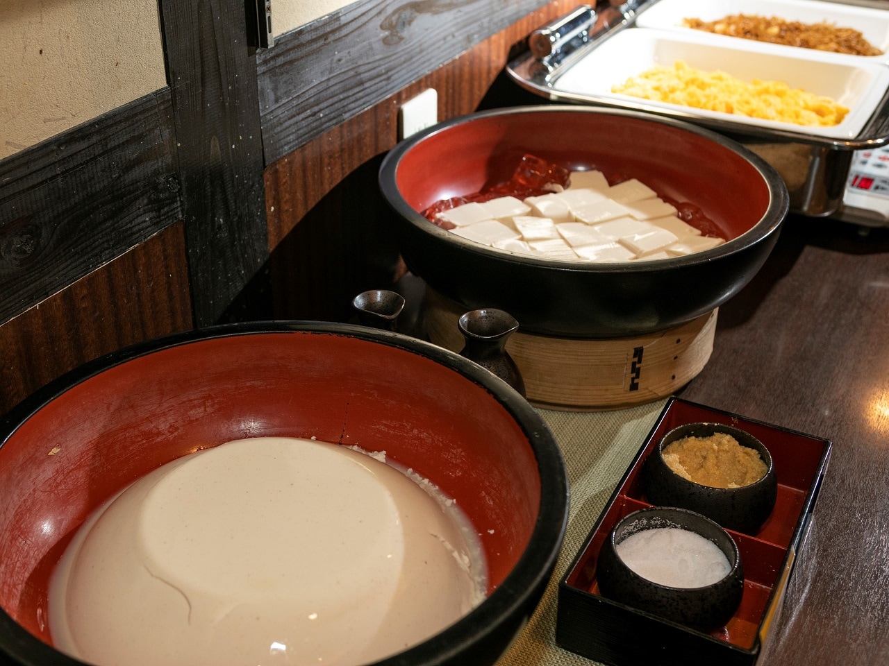 【全50種類の和洋バイキング】京都銀ゆば 大阪谷町店 京都銀ゆばの豆富は、国産大豆を使い、じっくり丁寧に作ります。朝食は40種類以上の和洋バイキング形式にてご提供しております。
