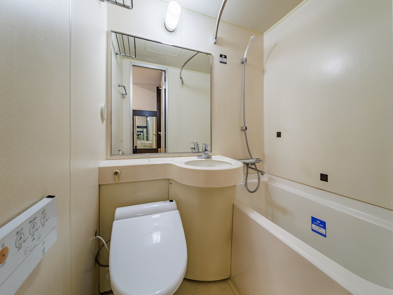 通常の浴槽より約20%の節水かつゆったり入浴できるアパホテルオリジナルユニットバス。(一部客室)