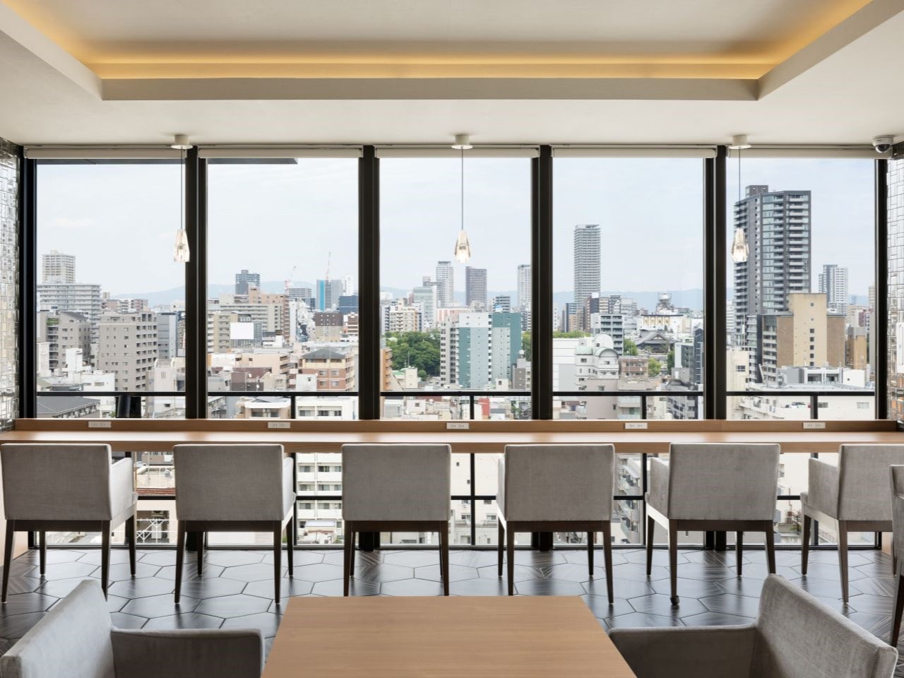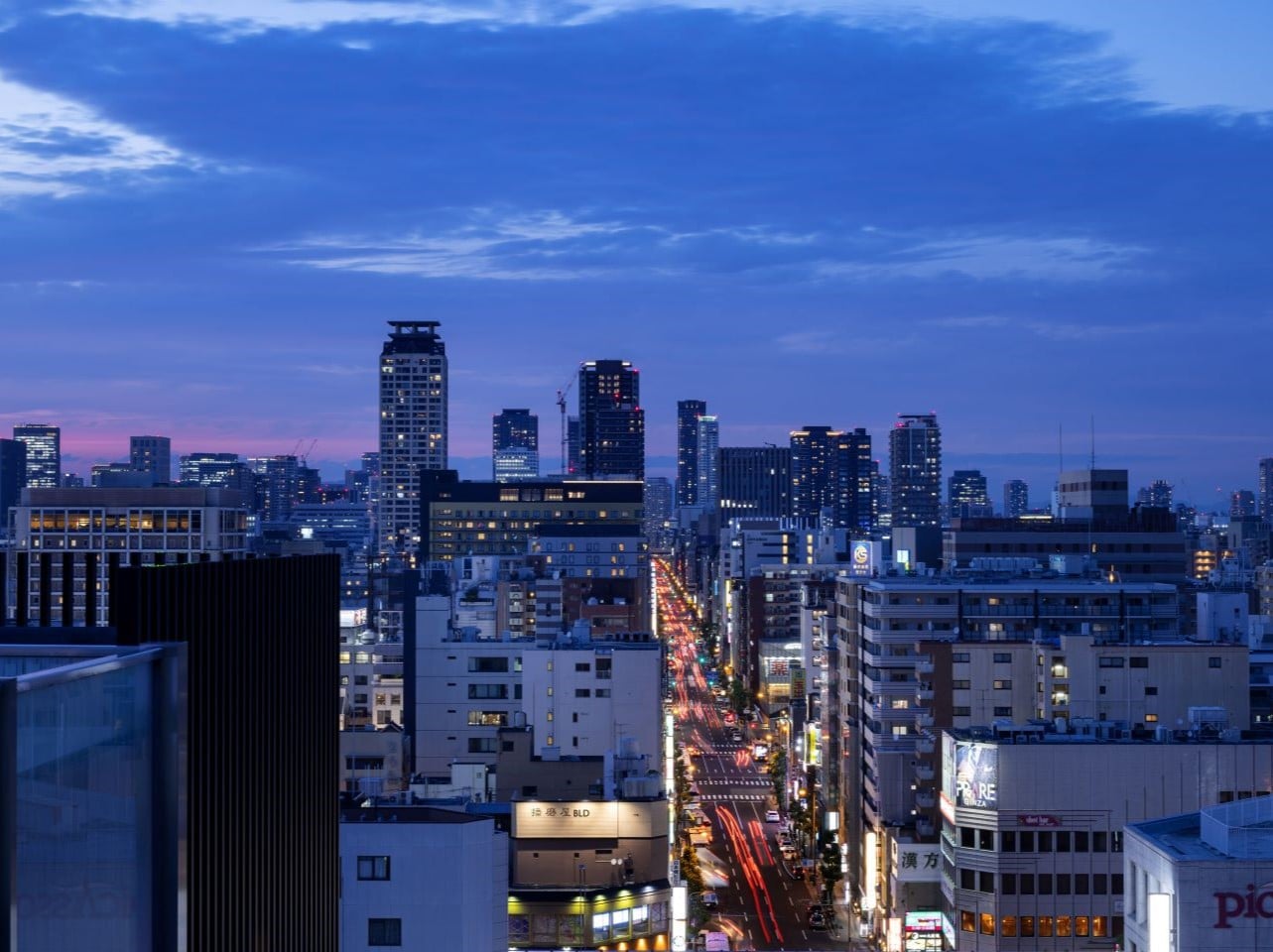 the b なんば黒門のルーフトップからは、大阪の中心部を一望できます。まるで都会の光に包まれるような体験を、静かでプライベートな空間でお楽しみください。