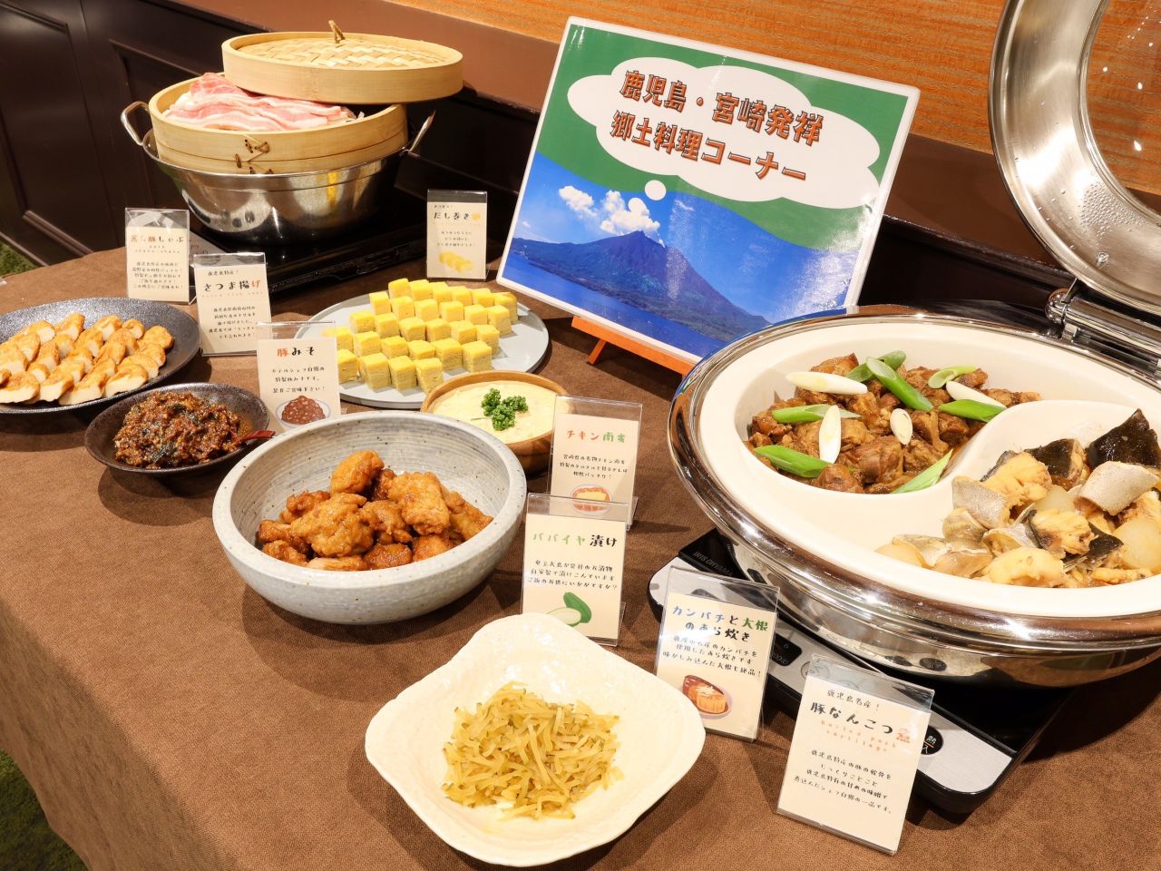 彩り豊かな朝食バイキング。新鮮サラダや地元食材を使用した和洋メニューを取り揃え、一日の始まりを元気にサポートします。