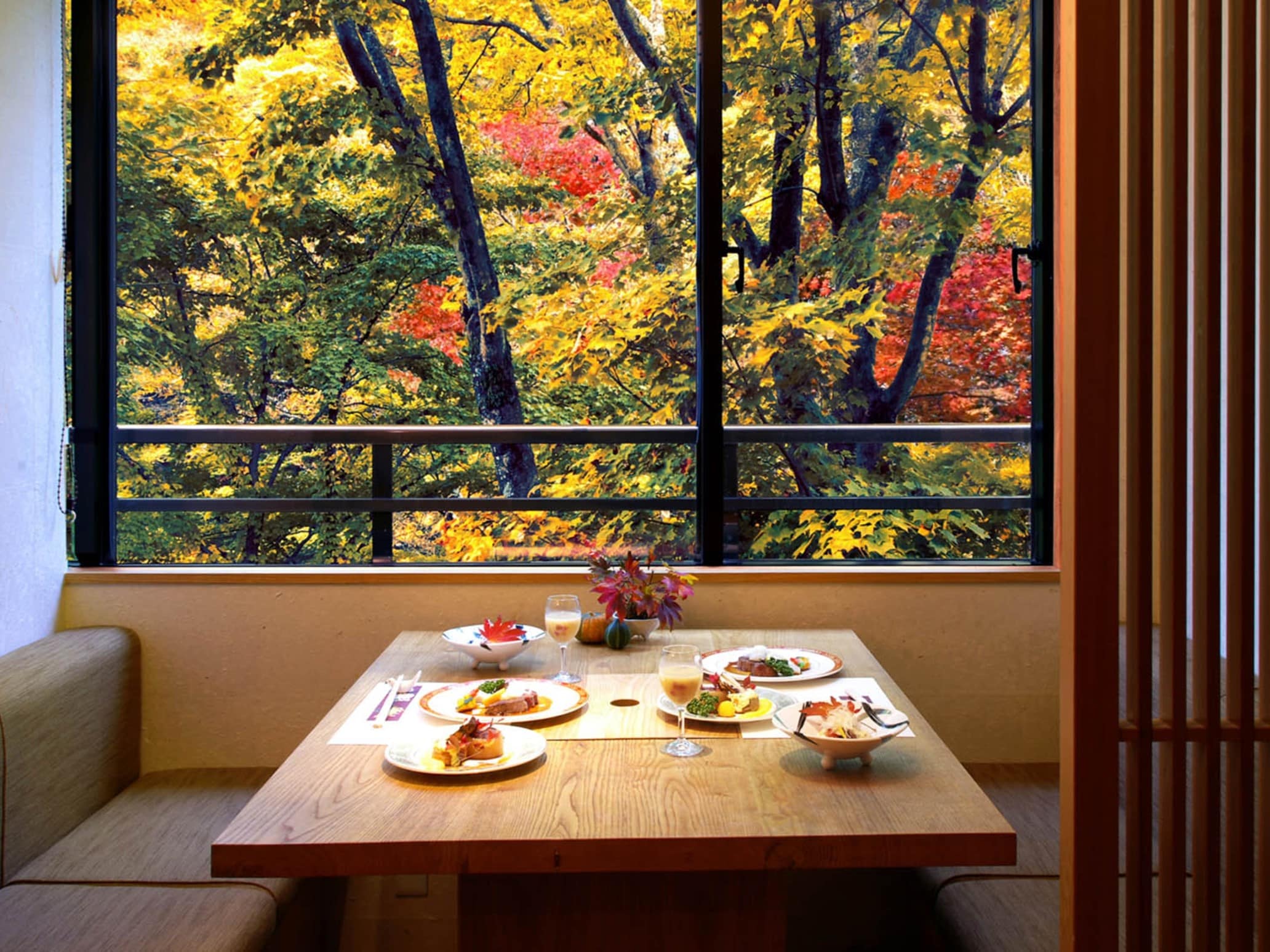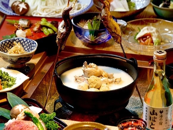 夕食は個室ダイニングで炭火焼きやここならではの【温泉蒸し】など地産地消料理をお召し上がりください。