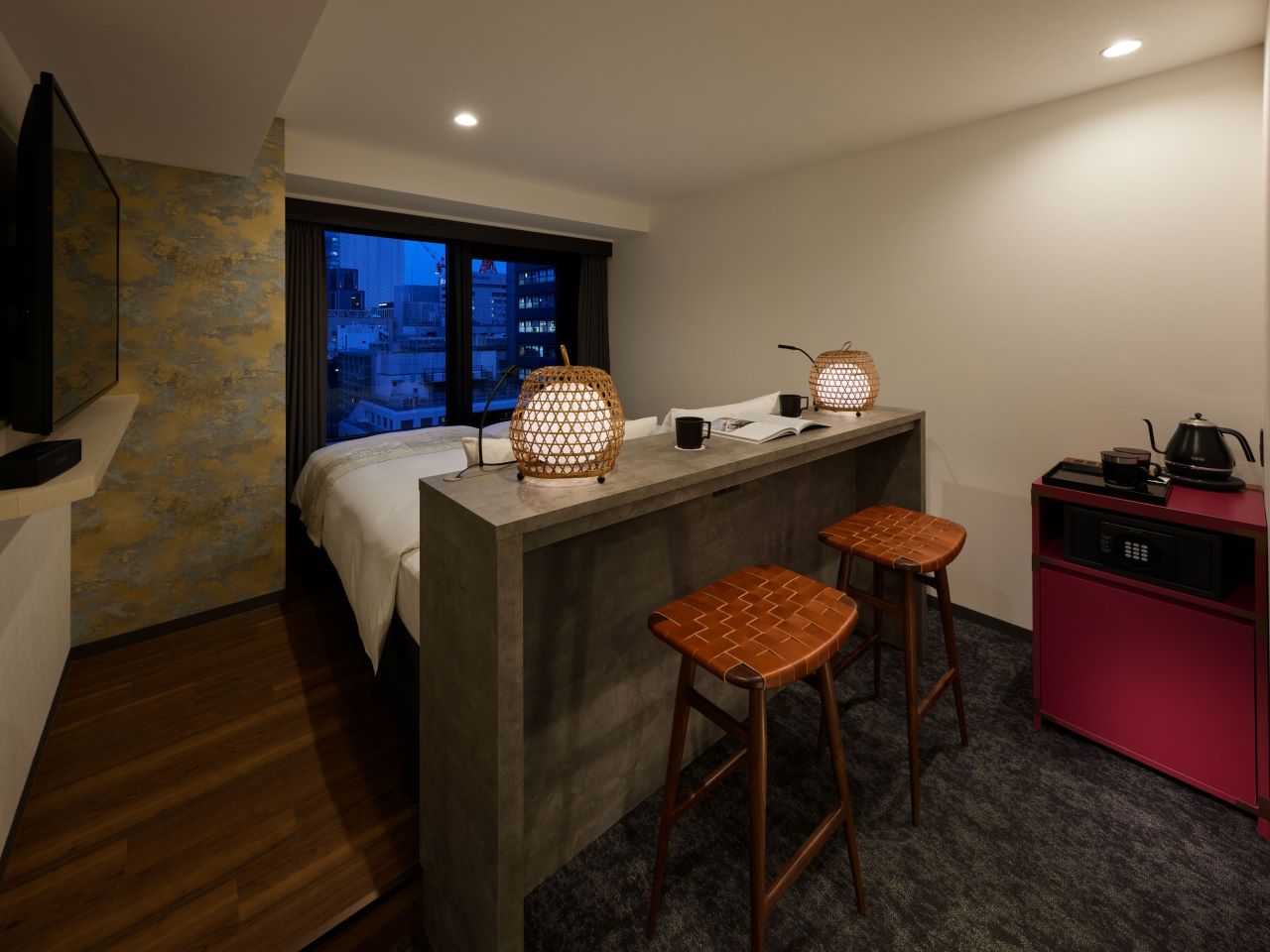 ホテル1Fでは、手軽につまめるフードメニューと、日本のこだわりが詰まったビールからワイン、日本酒まで多彩なドリンクを用意したバーを営業しています。
