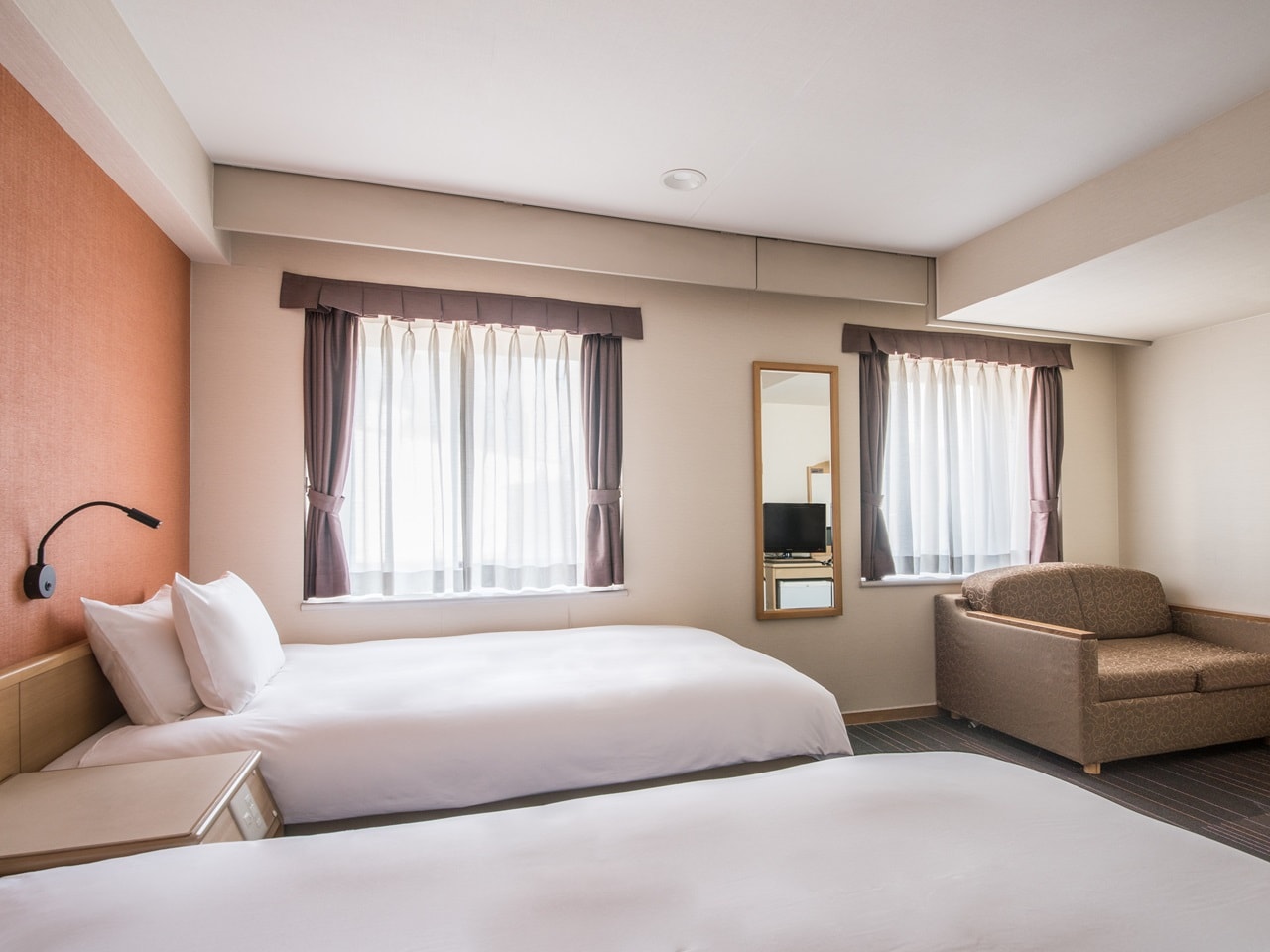 22平米/ベッド幅120㎝×205㎝×2台/禁煙/バスタブ/ソファベッド設置可