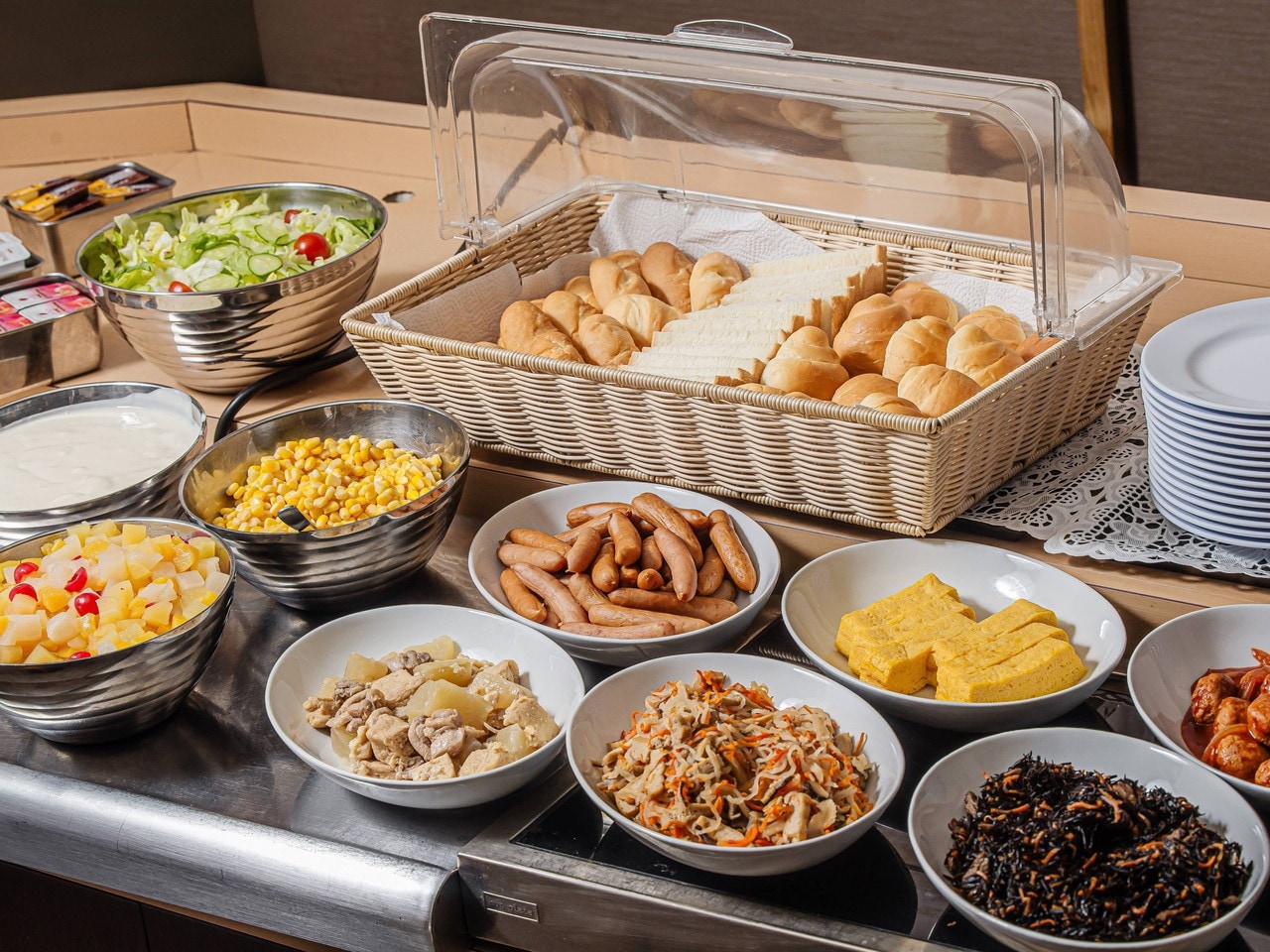 「呉竹荘 料亭の味」にこだわった和洋食のバイキングを無料でお召し上がりいただけます。素材にこだわった種類豊富な美味しいパンや、当ホテル1番人気の「呉竹荘総料理長監修のオリジナルカレー」も朝からご用意しております!
