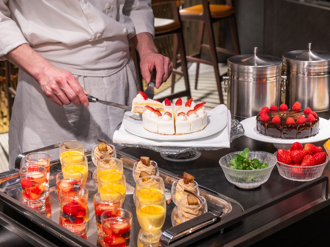 メインディッシュのあとは、絶景のラウンジでパティシエ特製デザートを。