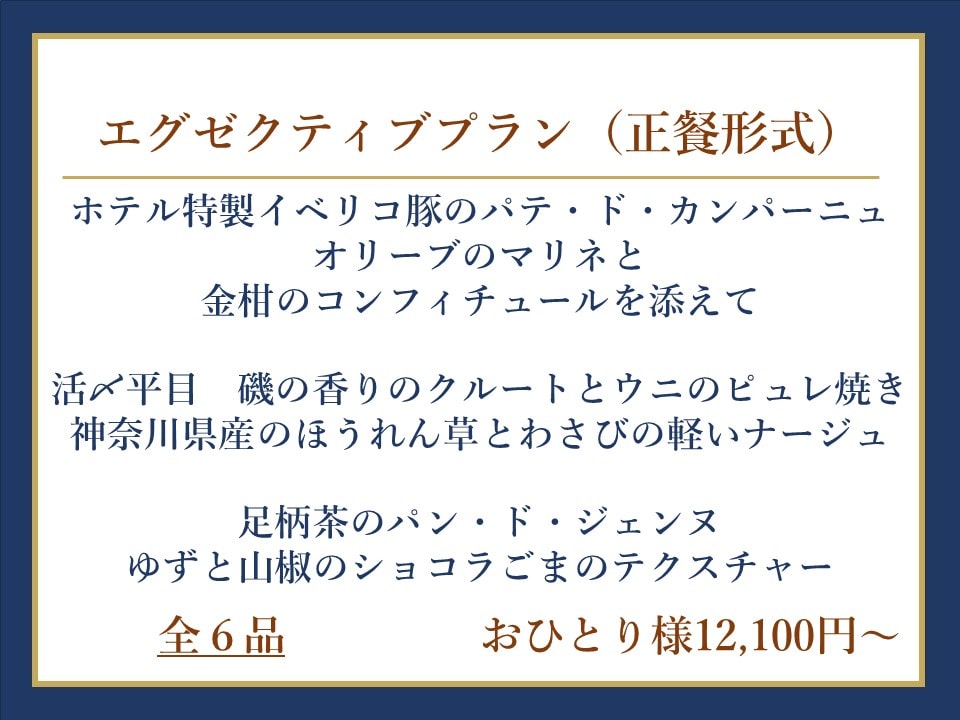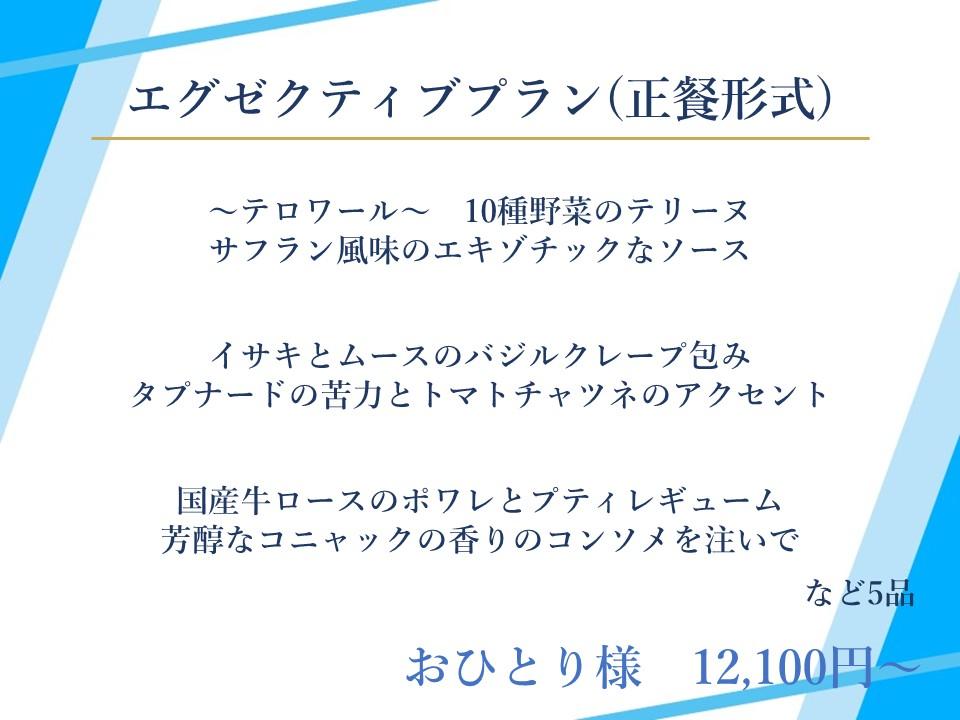 | エグゼクティブプラン | 着席正餐形式 おひとり様/12,100円(税込)~ 【10名様~】 |