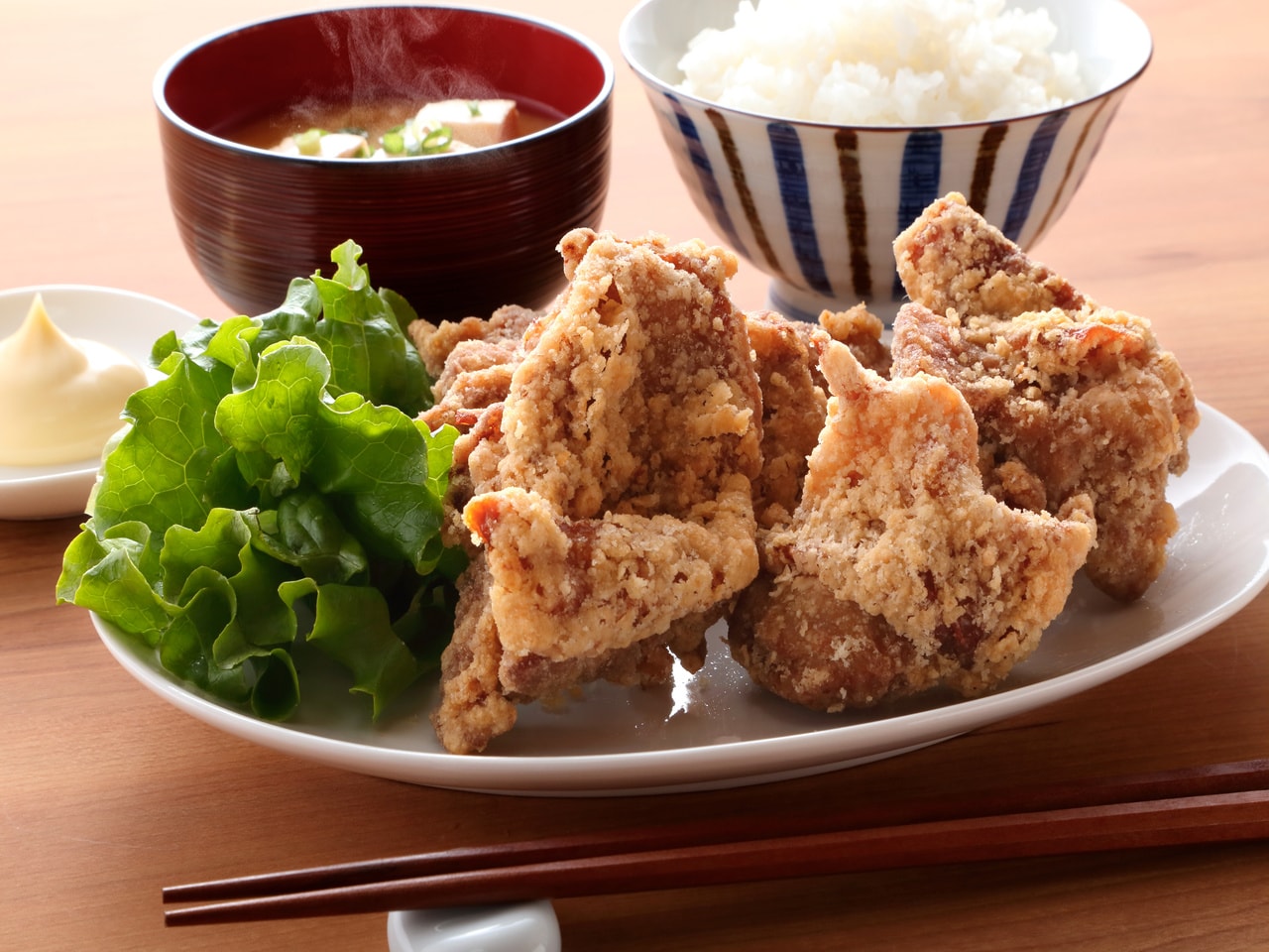 千葉県産の地鶏(錦爽鶏)のあつあつから揚げと卵かけごはんの贅沢ランチセット950円(税込)