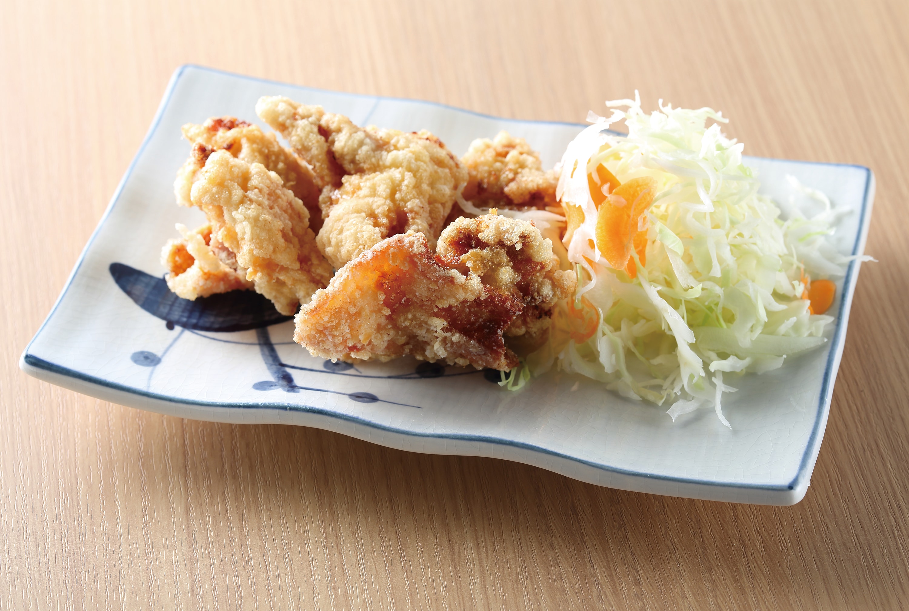 自然な環境で育った千葉の地鶏をから揚げに。肉質は柔らかく大変ジューシー。590円(税込)