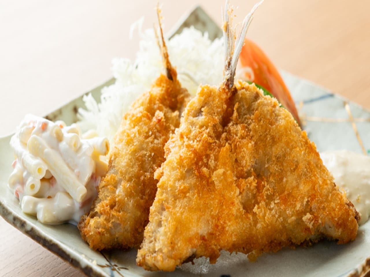 肉厚のあじを贅沢に2枚。生パン粉でサクサクに仕上げました。690円(税込)