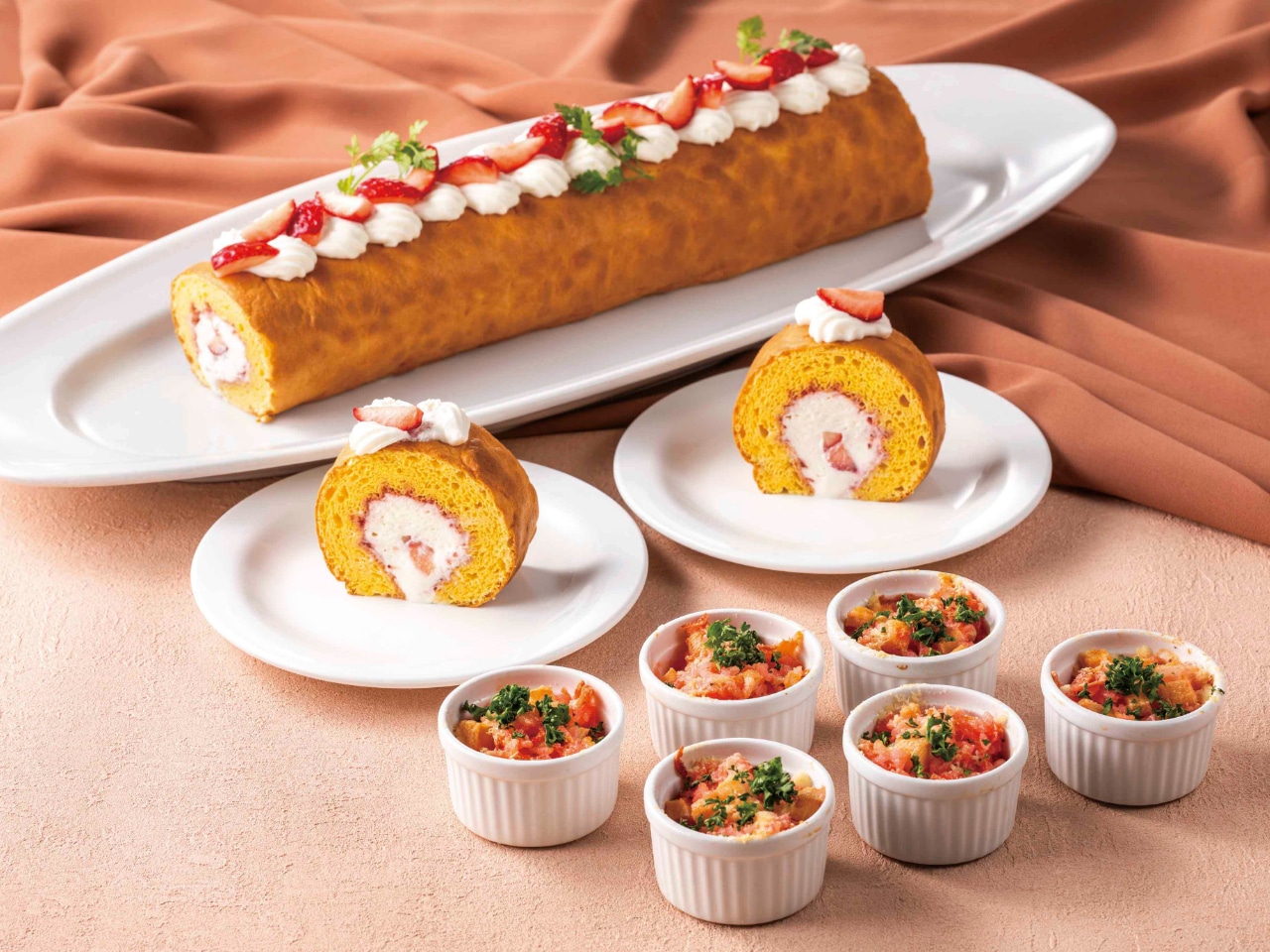 ふわふわの生地ととろける生クリームで贅沢に苺を巻き上げました。ロールケーキの上にも苺がのっているため、最後の一口までお楽しみいただけます。