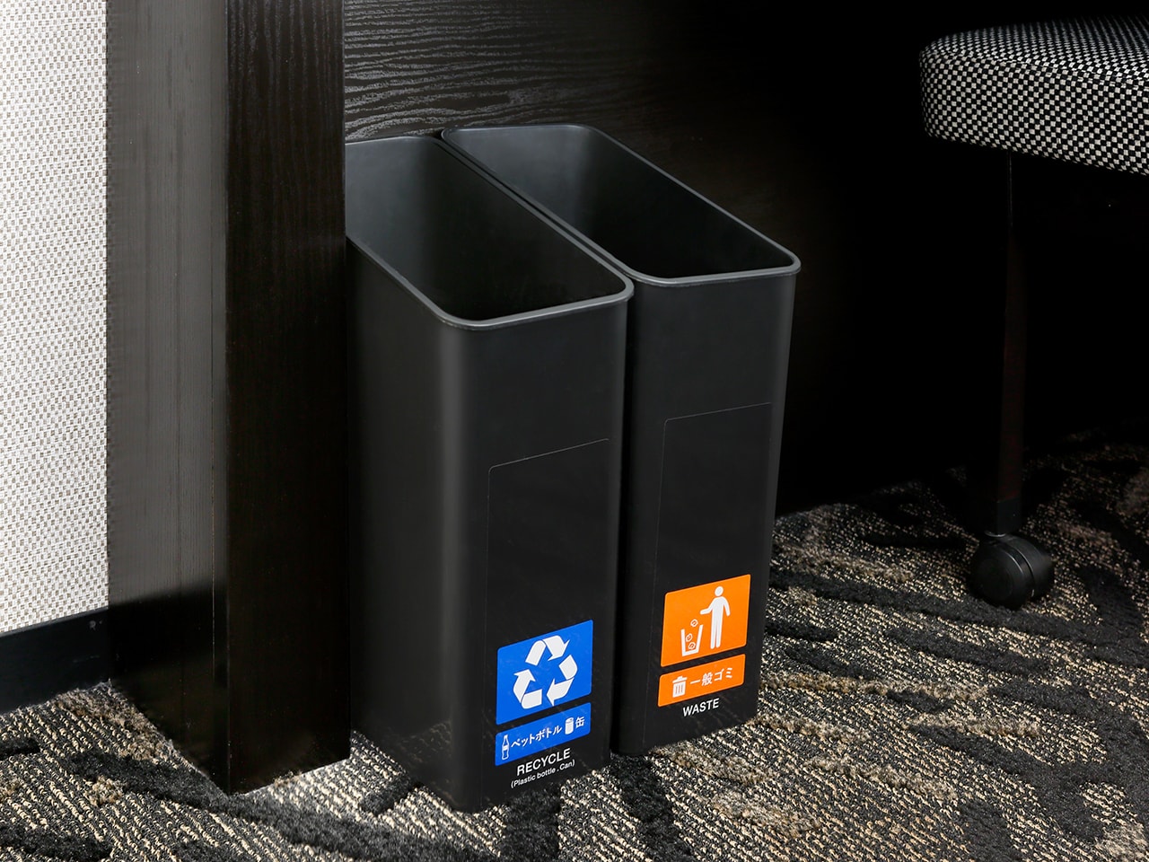 環境に配慮し、ゴミの分別をできるように2種類のゴミ箱を設置。