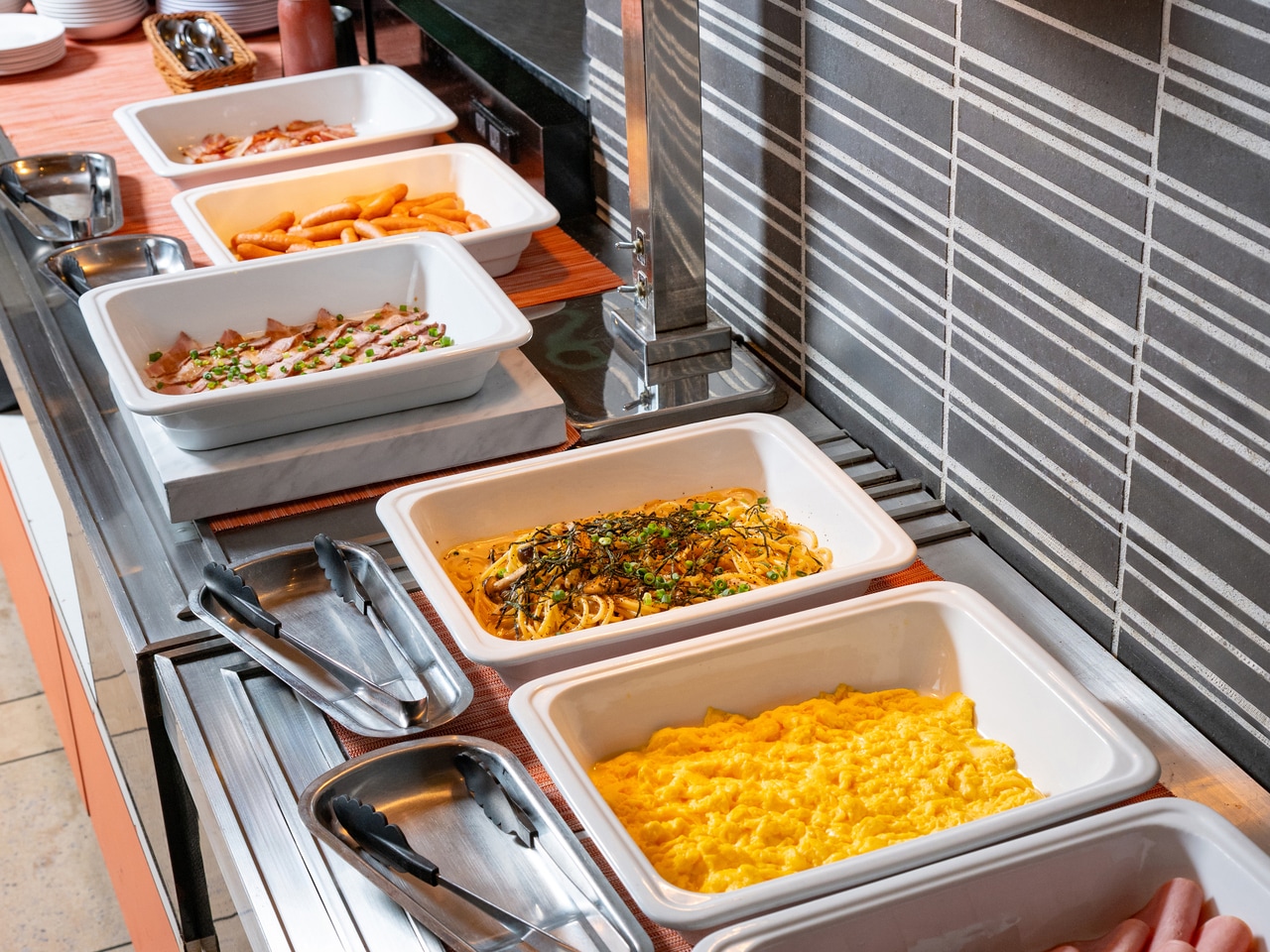 洋食ビュッフェ一例(スクランブルエッグ・本日のパスタ)