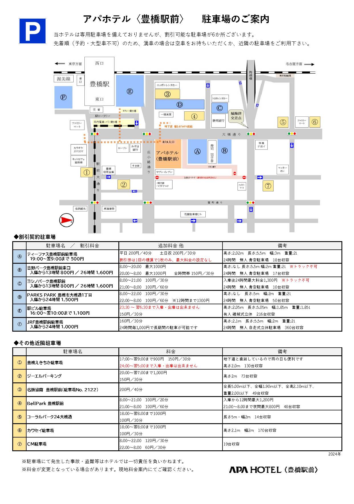当館はホテル専用駐車場を備えておりませんので、周辺の一般駐車場をご利用いただいております。 一部割引可能な駐車場がございますので、下記駐車場へ駐車されたお客様はフロントへお申し出ください。