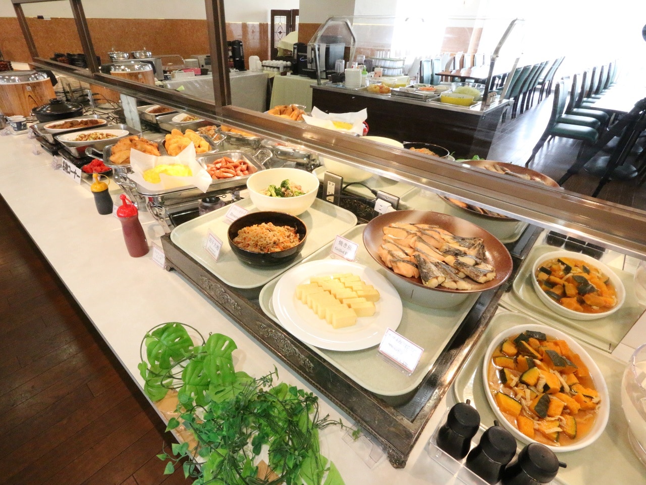 | 内容 | 30種類以上の和洋ビュッフェをご用意。 定番のおばんざいはもちろん、朝から元気の出るカレー等 様々なジャンルのメニューをご用意しております。 |