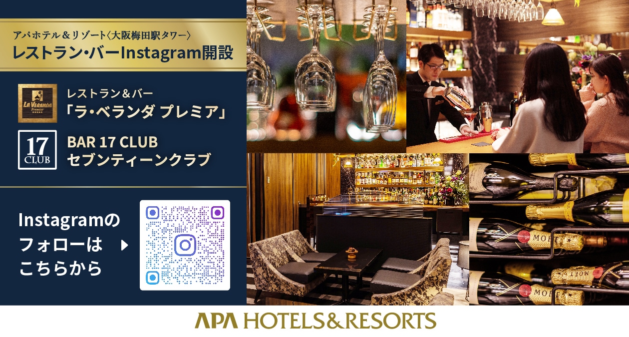 レストラン 2023年06月01日(木)アパホテル&リゾート〈大阪梅田駅タワー〉(全1,704室)では、3階に「BAR 17 CLUB(セブンティーンクラブ)」