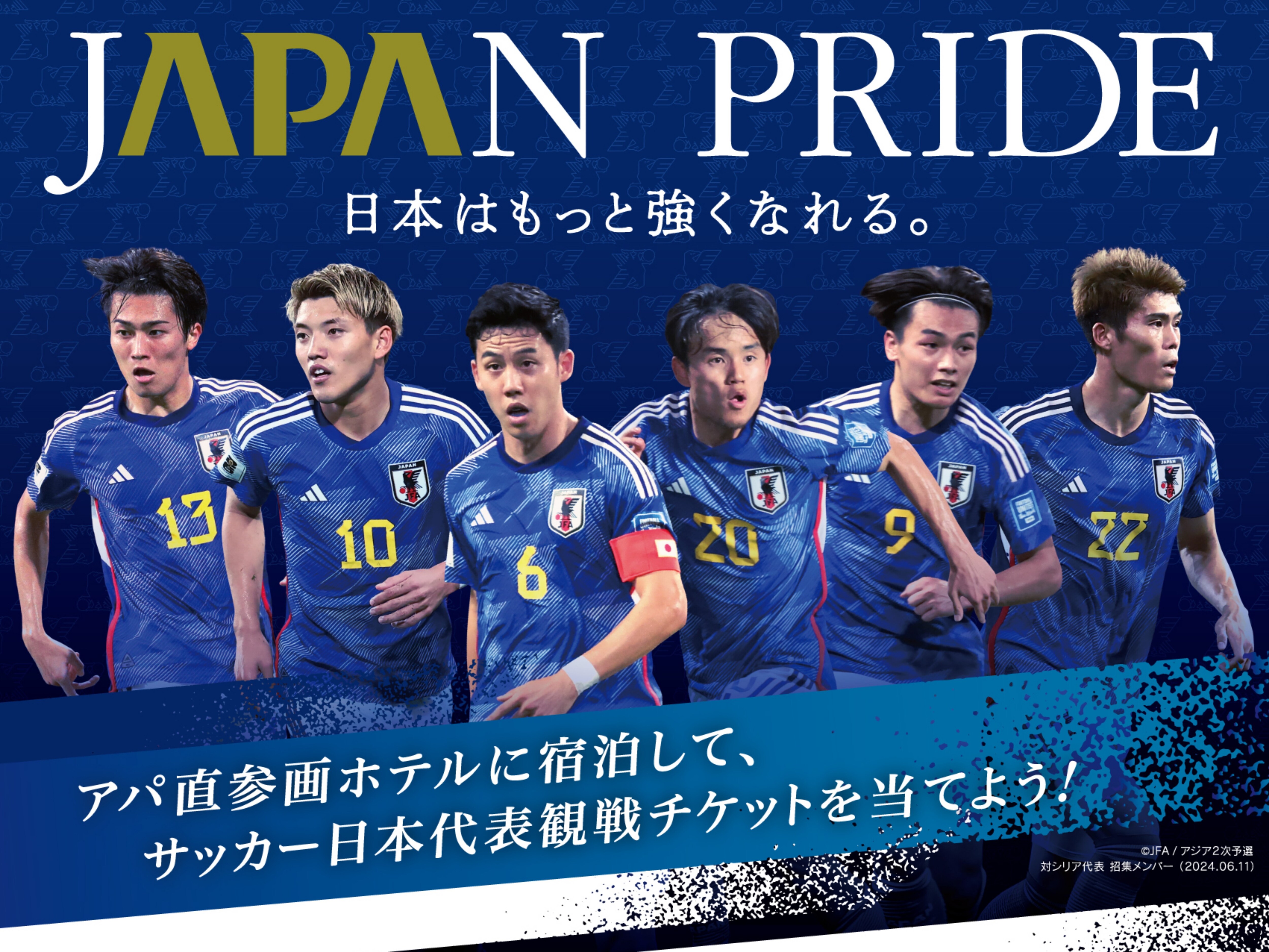 アパ直参画ホテル 2024年09月02日(月)アパ直参画ホテルに宿泊してサッカー日本代表観戦チケットを当てよう!!