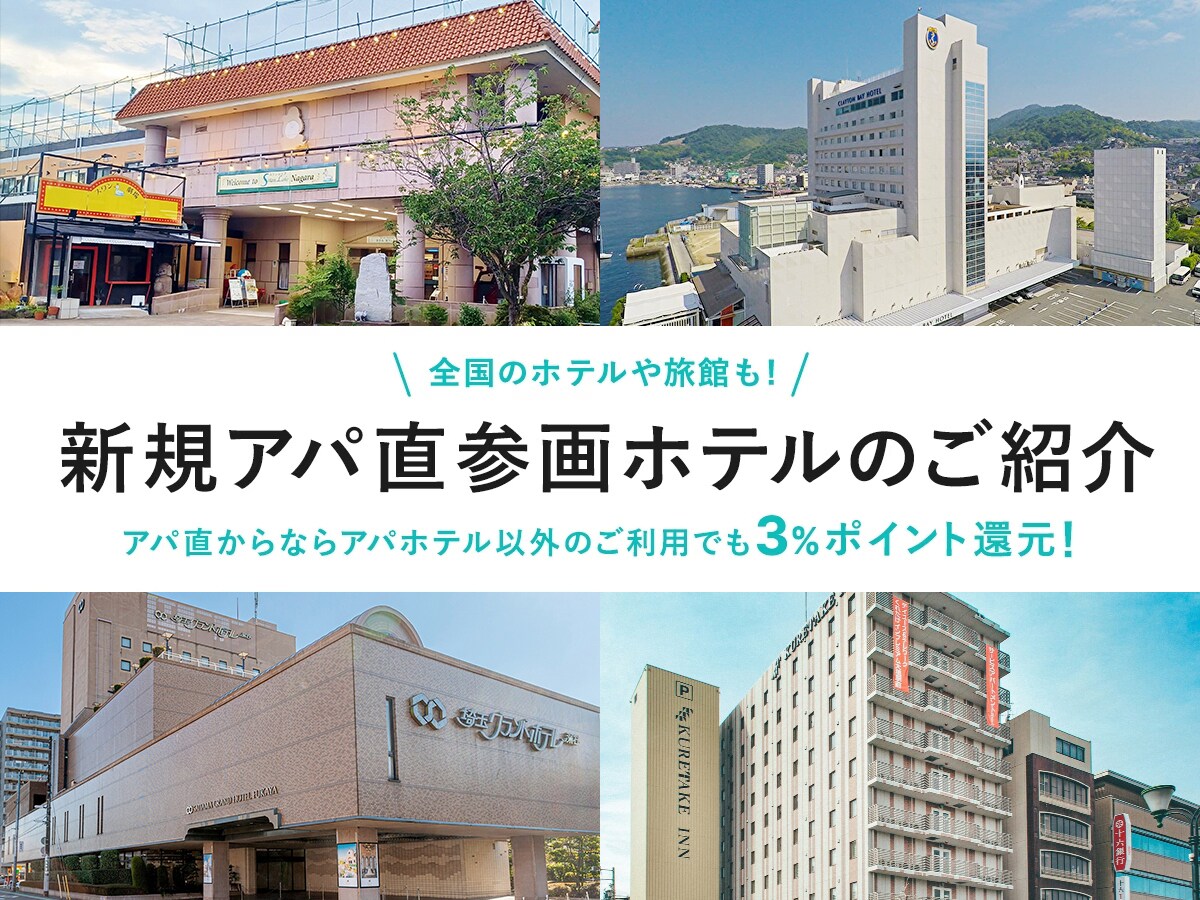 アパ直参画ホテル 2024年09月11日(水)アパ直(アパトラベルホテル直接予約)は、アパホテルブランドに加え、全国500以上のアパ直参画ホテルの宿泊予約が可能!