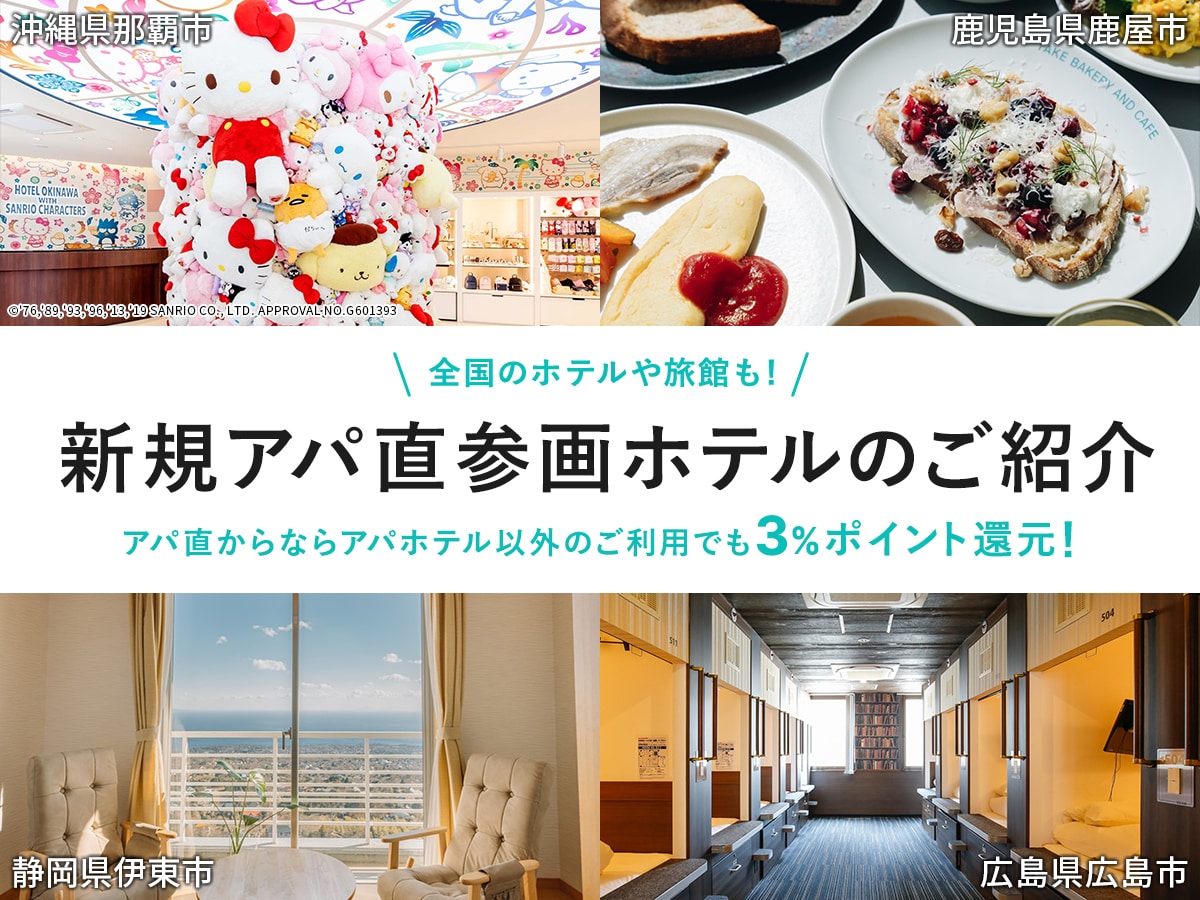 アパ直参画ホテル 2025年09月08日(月)アパ直(アパトラベルホテル直接予約)は、アパホテルブランドに加え、全国600以上のアパ直参画ホテルの宿泊予約が可能!