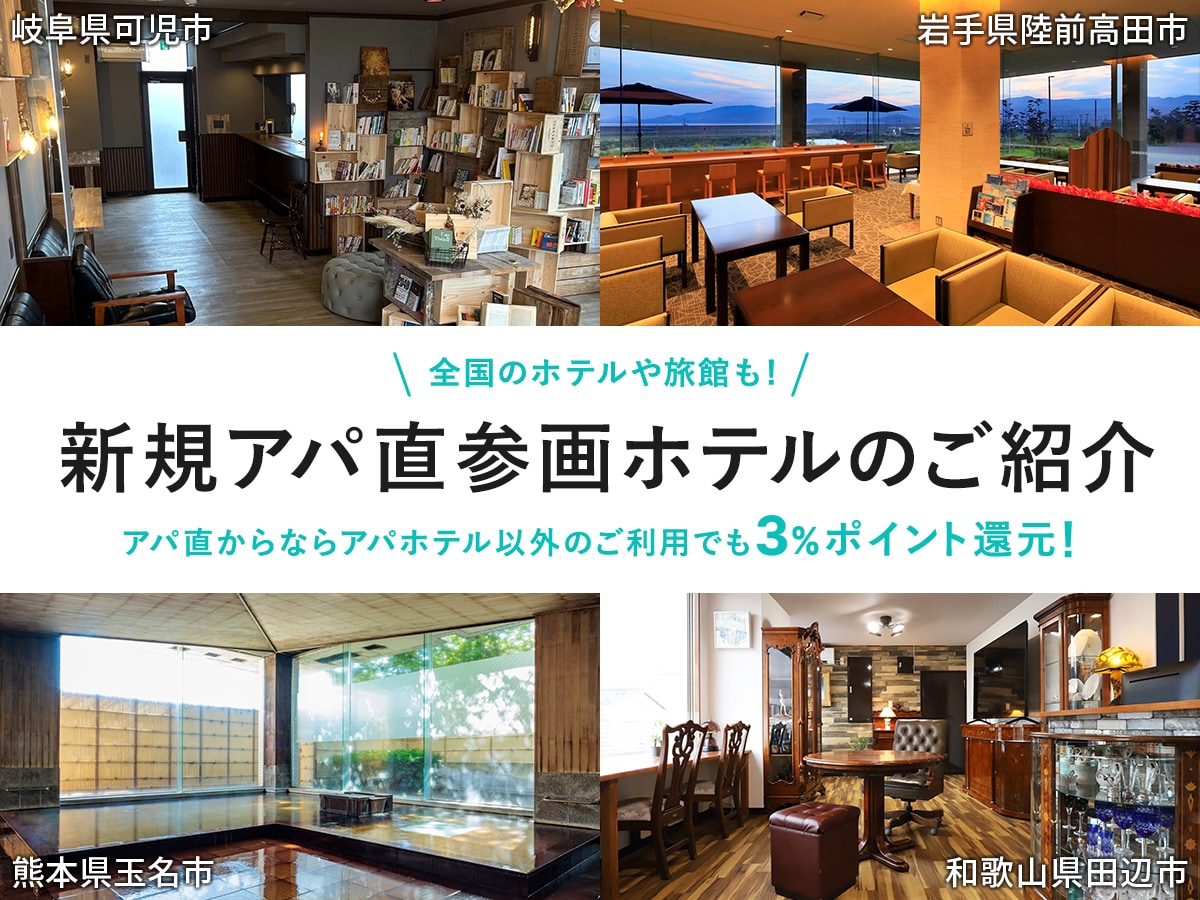 アパ直参画ホテル 2025年10月07日(火)アパ直(アパトラベルホテル直接予約)は、アパホテルブランドに加え、全国600以上のアパ直参画ホテルの宿泊予約が可能!