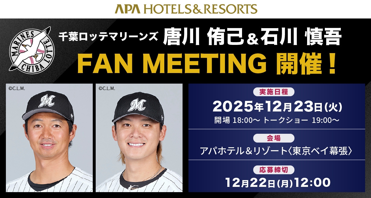 イベント 2025年12月03日(水)千葉ロッテマリーンズの唐川 侑己選手、石川 慎吾選手をゲストに迎えたファンミーティングを開催!