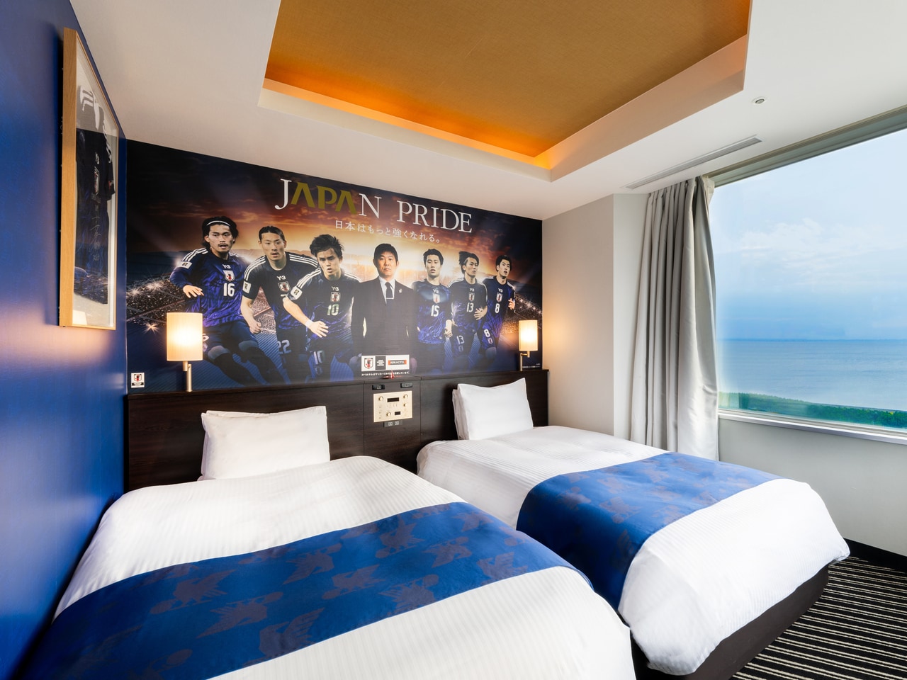 東京湾の海と目の前に広がる「高円宮記念JFA夢フィールド」との、青と緑のコントラストでサッカーファミリーにとって特別なホテルステイを。