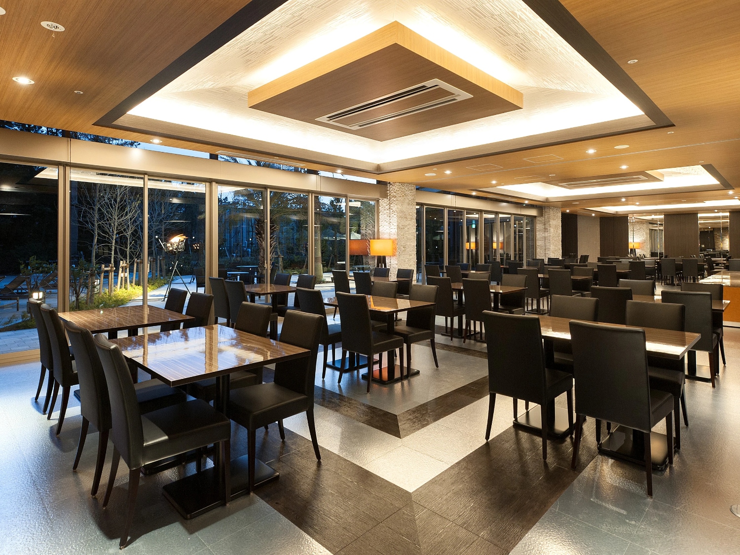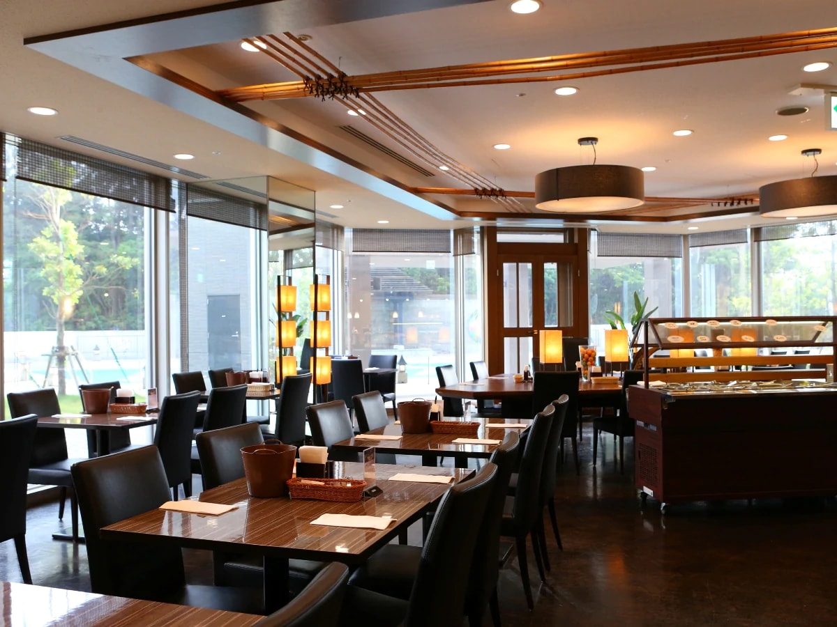 明るい陽光が差し込み、開放的なプールサイドが広がり、シェフ自慢の料理をお楽しみけいただけるビュッフェ形式のダイニングレストランです。