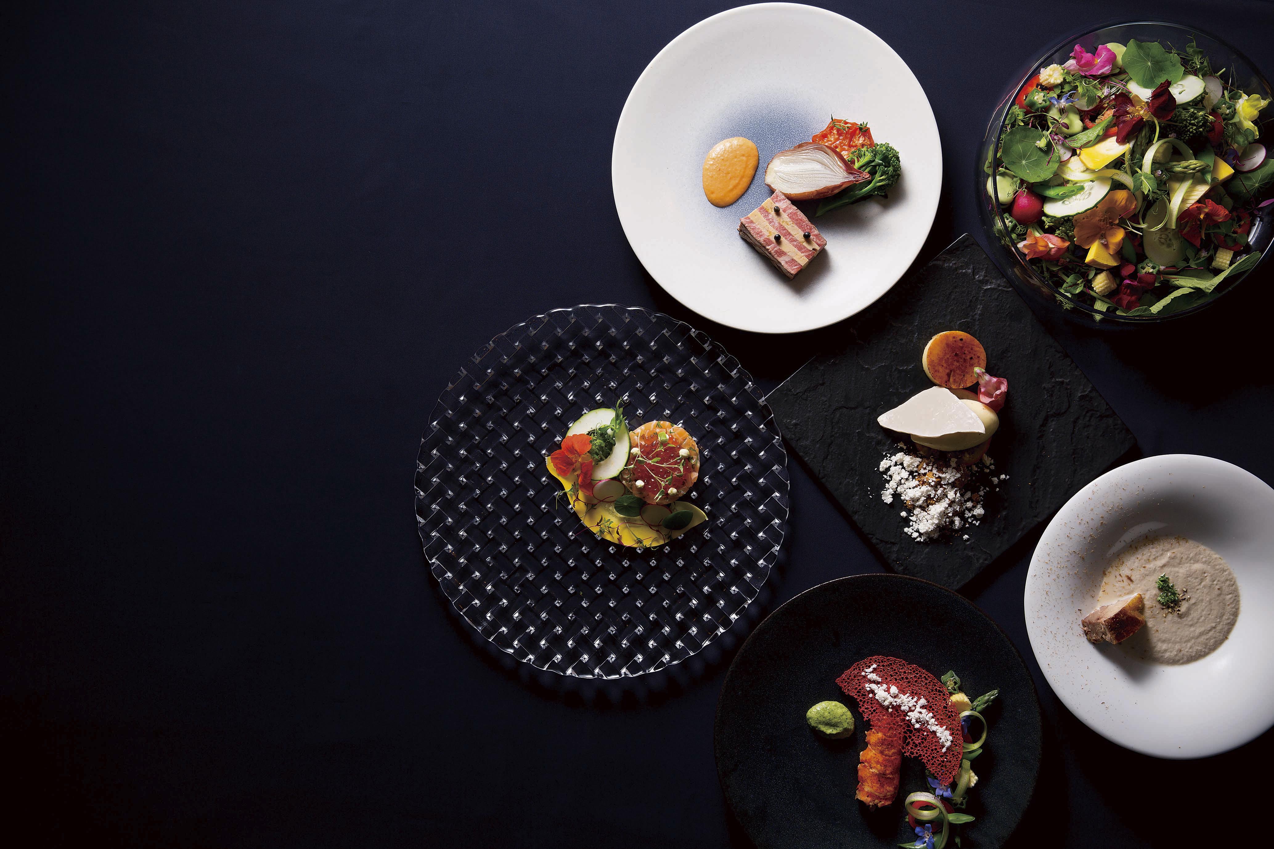 旬の食材を使用した季節感を楽しめるディナーコースでは、シェフこだわりのオードブルや牛サーロインのグリエ、デザートに至るまで目にも美しい極上の品々をご堪能いただけます。