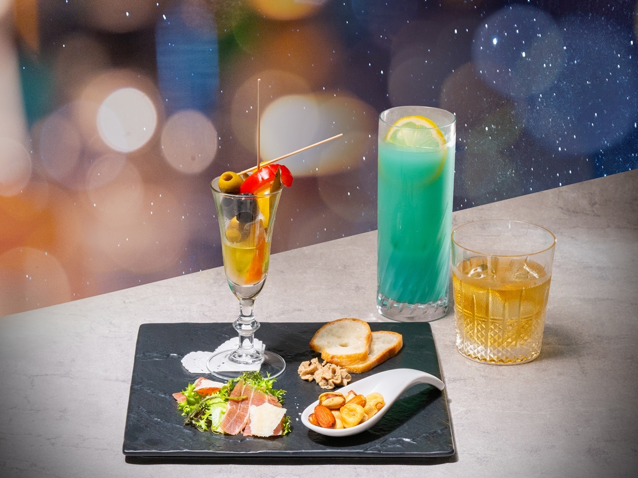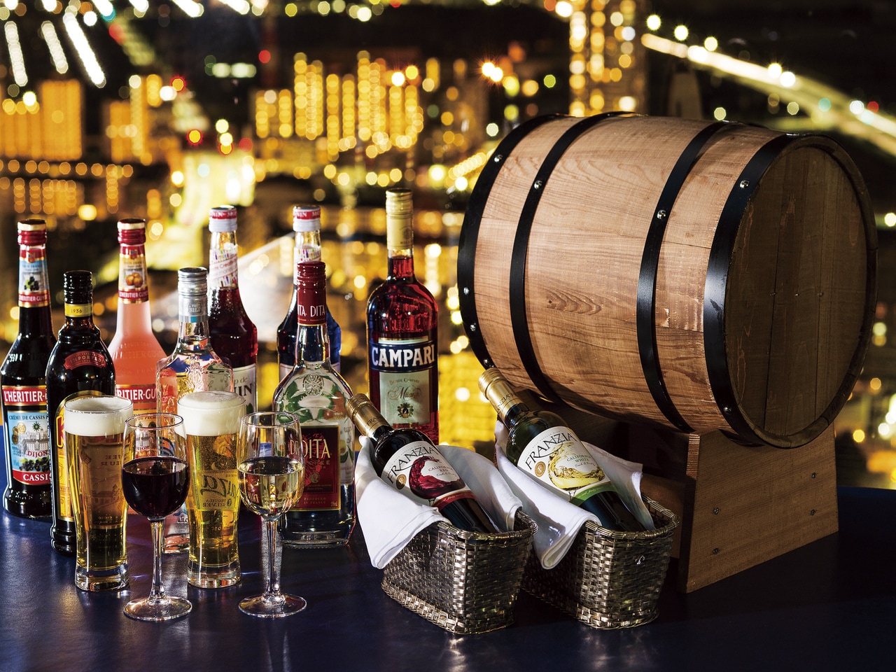 『世界の銘酒やカクテルを夜景と共に』世界の銘酒やバーテンダーが創るカクテルを、地上180mからの夜景と共に、素敵な夜をお過ごしくださいませ。ノンルコールカクテルもご用意しております。