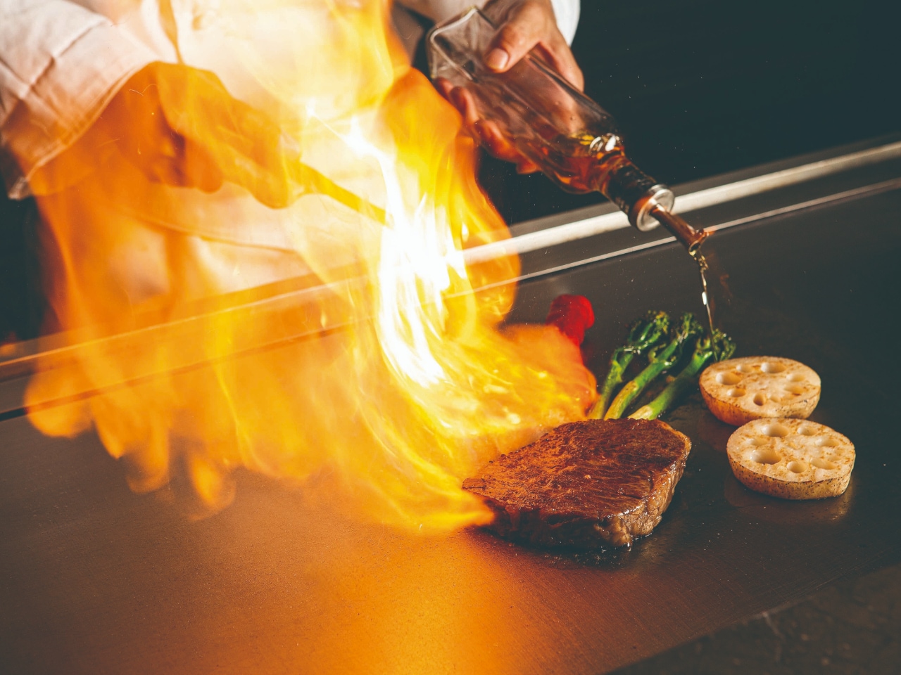 担当シェフがついて食材を目の前で焼き上げます。