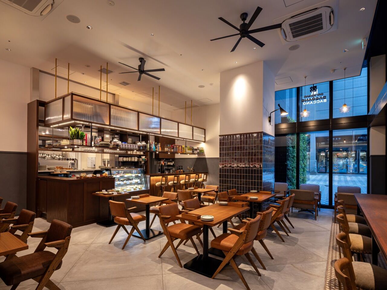 朝からランチタイムまではカフェ、夜はカフェバーと時間帯によって表情を変えるCafe & Bar 。