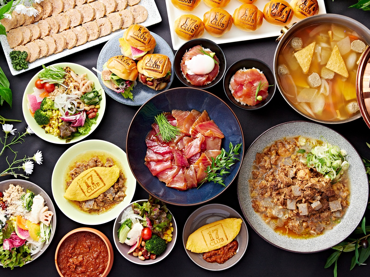 ブランチビュッフェにお越し頂いたお客様におすすめのお料理を5つご用意しております。【これだけは食べて欲しい5大料理】①マグロ鉄火醬油漬け(丼)~大阪もん 王醬醬油をアクセントに使って漬け込みました~ ※オープン~10:30まで提供。②神戸牛と国産豚のパティのオープンサンド③ライブキッチンで作る 17CLUB特製オムレツ ~大阪名物 神戸牛と和牛のどて焼きソースをかけて~④蒲鉾とイワシのつみれ汁(関西・昆布だし)⑤17CLUB 特製サラダ(大阪もん野菜など17種類のカスタムサラダ)ぜひ、ご賞味くださいませ。