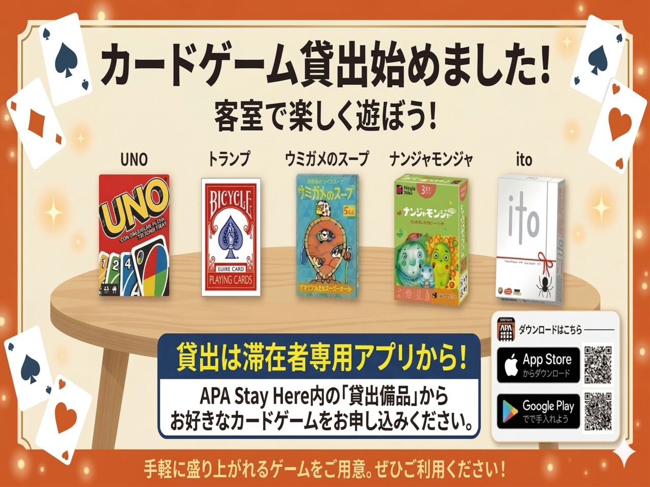 2026年4月8日(水)より貸出備品へカードゲームを導入いたしました。