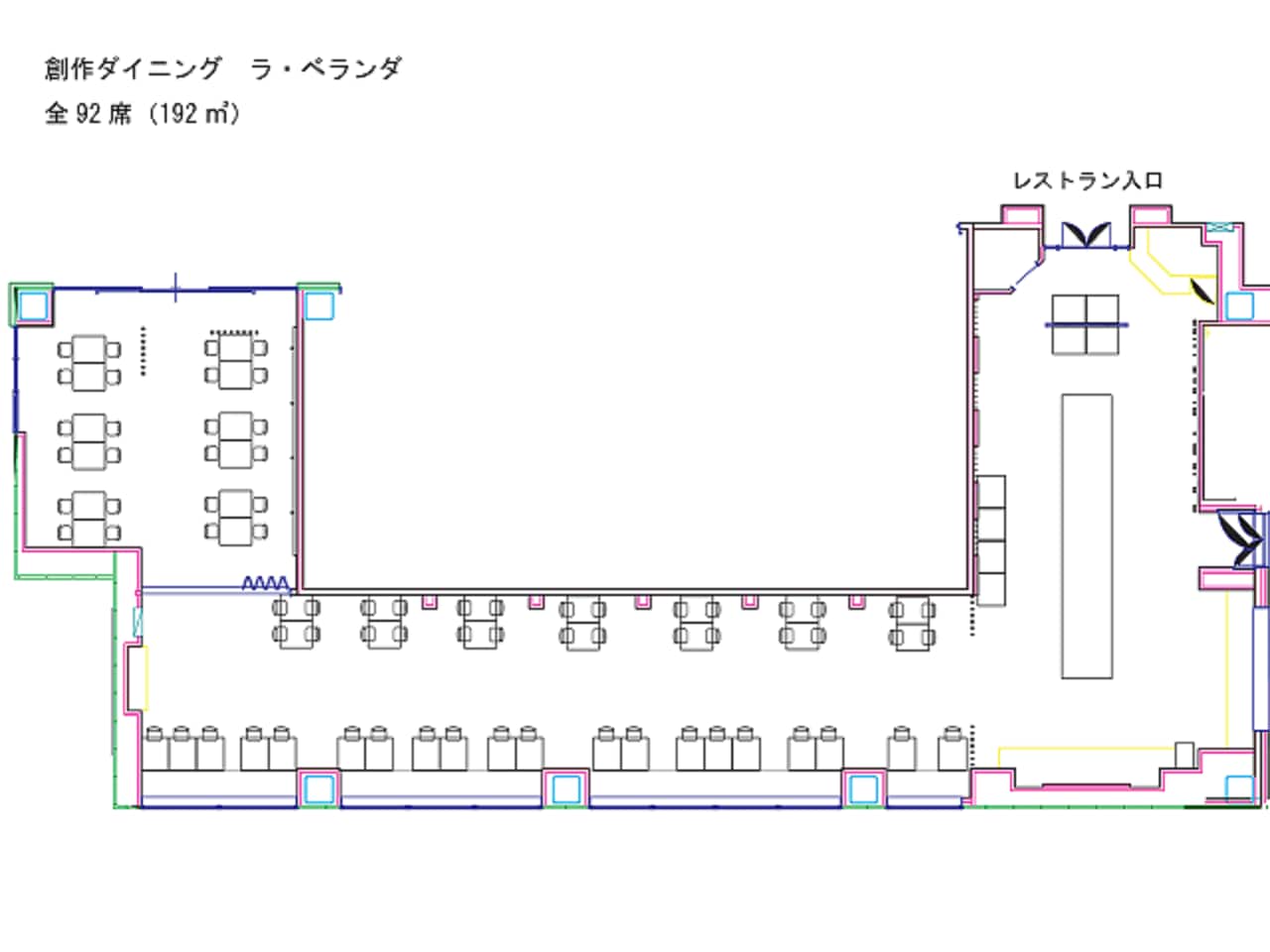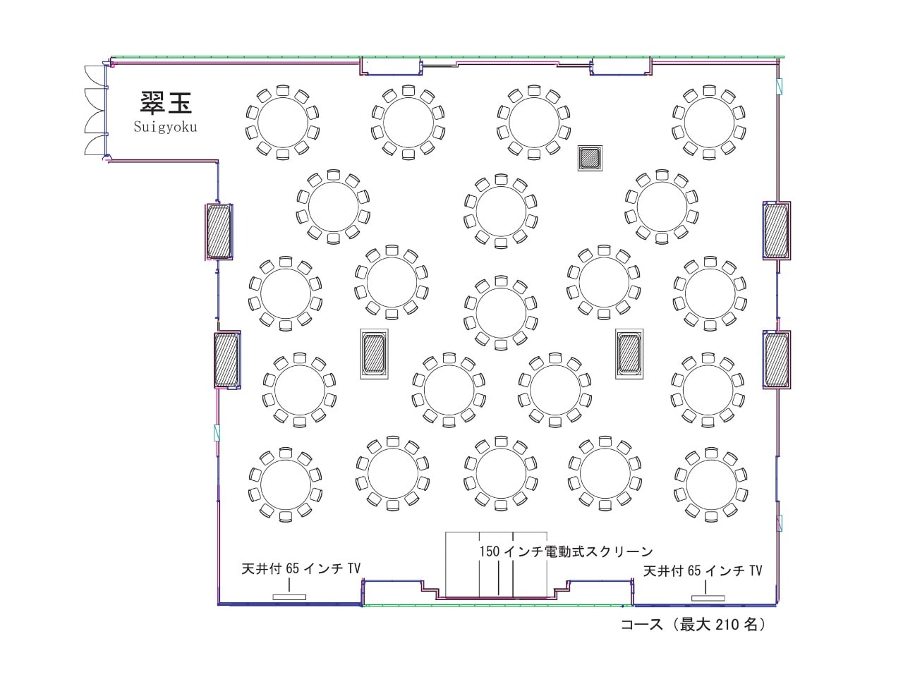 宴会場にて120名様利用の場合のレイアウト例になります。