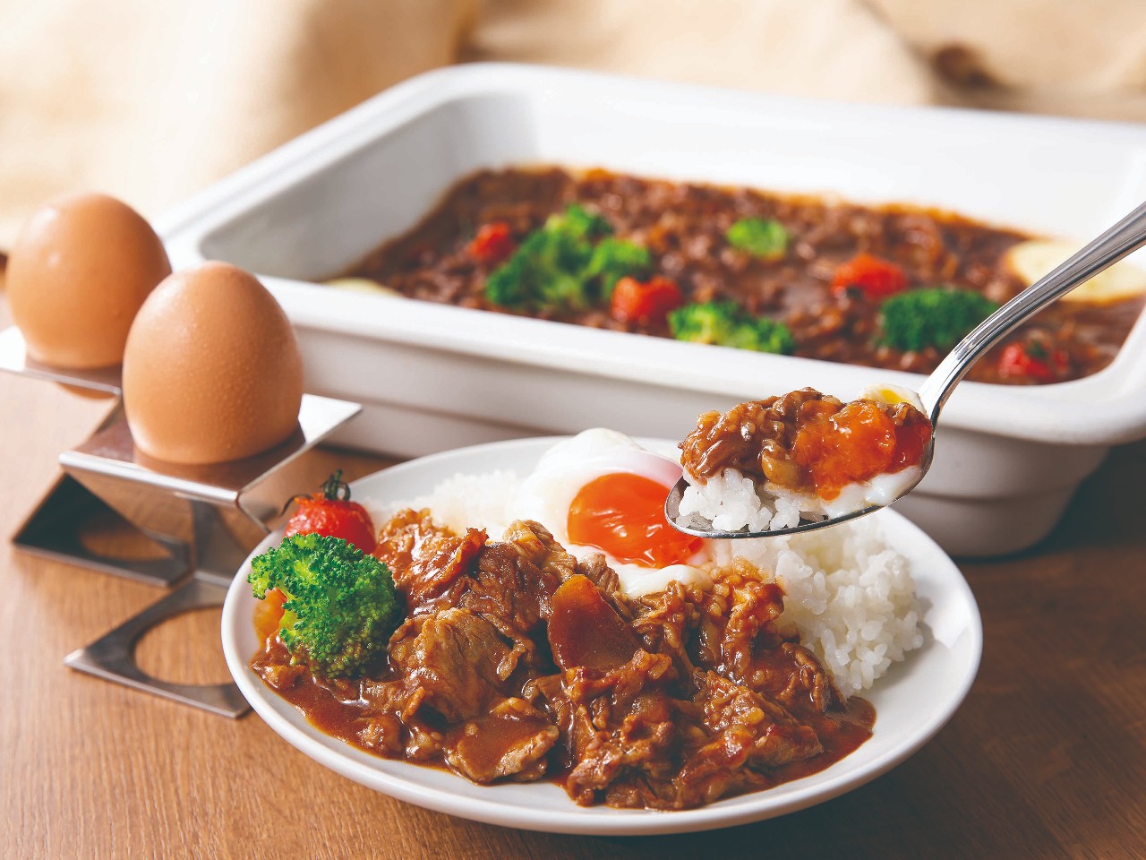 オリジナルスパイスとまろやかなソースを贅沢に使い、じっくり煮込んだ牛肉と野菜の自然な甘みを引き出した本格派ビーフカレーです。