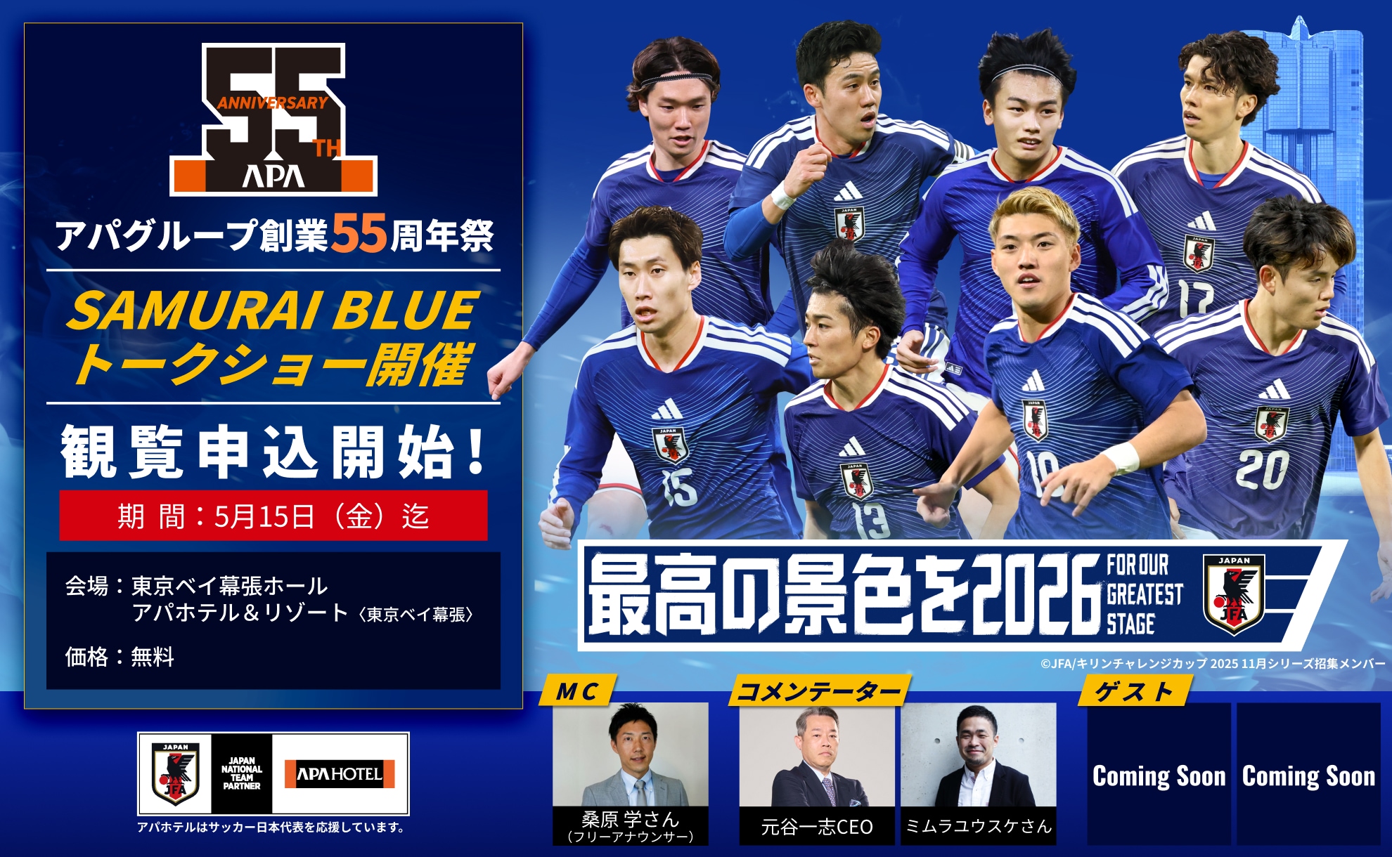 コメンテーター:元谷一志(アパグループ社長兼CEO)、ミムラユウスケさん(サッカージャーナリスト)
