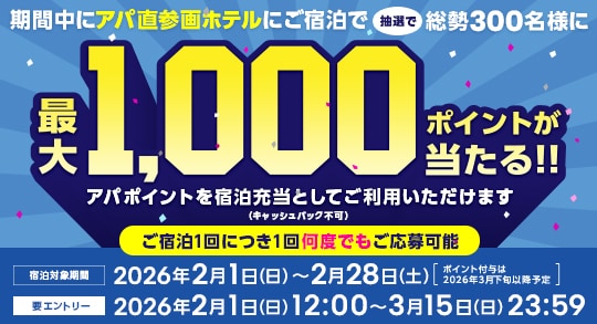 3%アパポイント還元※ポイント付与はご宿泊日起算11日後となります。